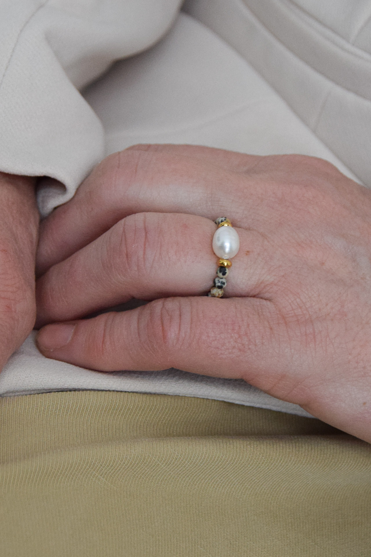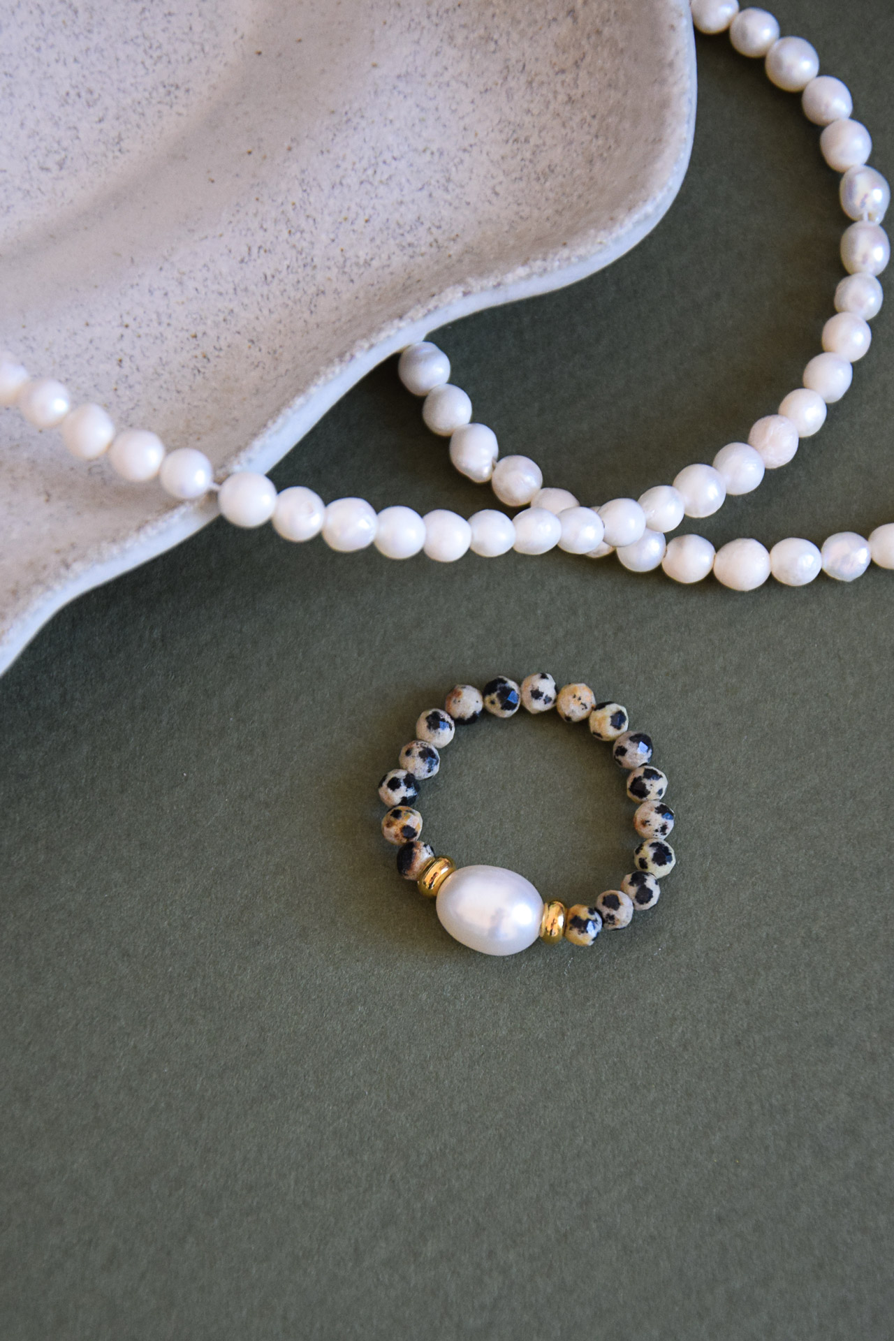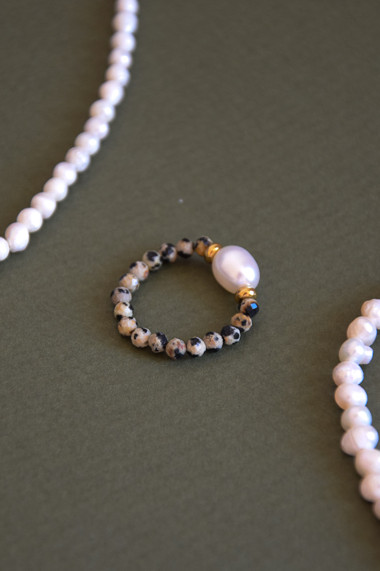 Klasyczna perła ryżowa w towarzystwie kamieni naturalnych.